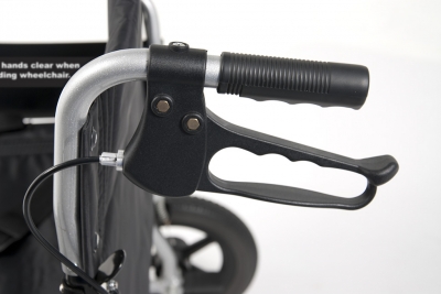 With its 24″ width and 400 lb weight capacity, this transport chair combines extra capacity in addition to compact transport need. Handle mounted attendant locks make it easy for a companion to engage.