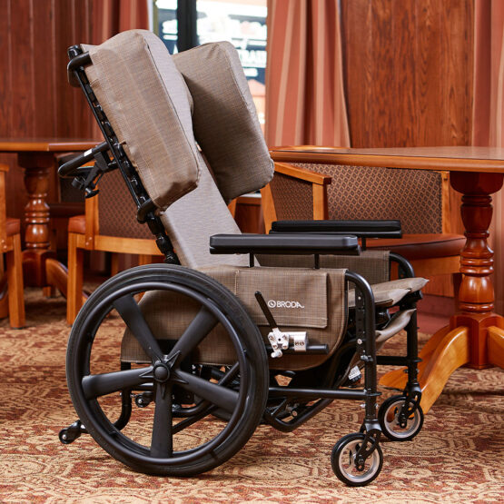 - Front-pivot seat tilt enhances line of sight for improved social engagement